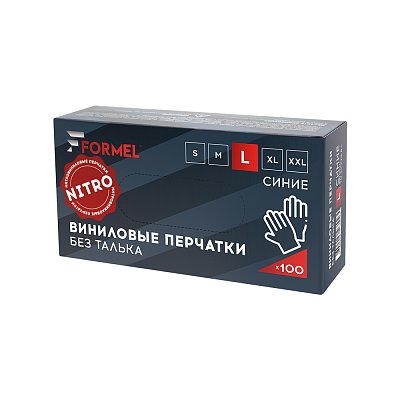 FORMEL Перчатки нитровиниловые, цвет синий, размер L, 50 пар/упак FM-GL-VYN-B-L можно купить по выгодной оптовой цене. Забрать товар можно самовывозом со склада-магазина в Дмитрове или выбрать доставку по Майкопу транспортной компанией при оформлении заказа.