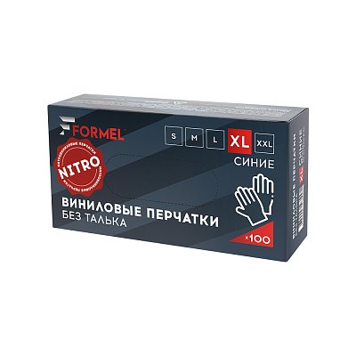 FORMEL Перчатки нитровиниловые, цвет синий, размер XL, 50 пар/упак FM-GL-VYN-B-XL можно купить по выгодной оптовой цене. Забрать товар можно самовывозом со склада-магазина в Дмитрове или выбрать доставку по Майкопу транспортной компанией при оформлении заказа.