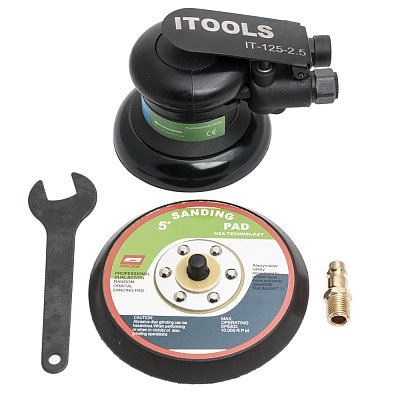 ITOOLS IT-125-2,5 Машинка шлифовальная пневматическая, орбита 2,5мм, подложка 125мм, без отверстий можно купить по выгодной оптовой цене. Забрать товар можно самовывозом со склада-магазина в Дмитрове или выбрать доставку по Майкопу транспортной компанией при оформлении заказа.