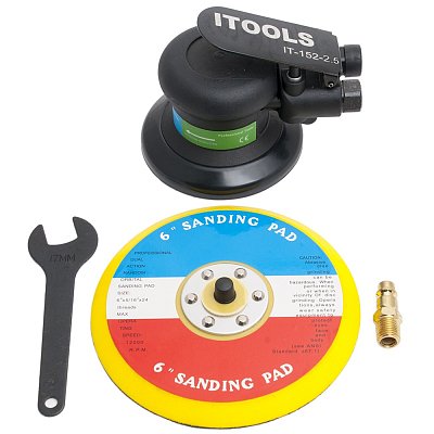 ITOOLS IT-152-2,5 Машинка шлифовальная пневматическая, орбита 2,5мм, подложка 152мм, без отверстий можно купить по выгодной оптовой цене. Забрать товар можно самовывозом со склада-магазина в Дмитрове или выбрать доставку по Майкопу транспортной компанией при оформлении заказа.