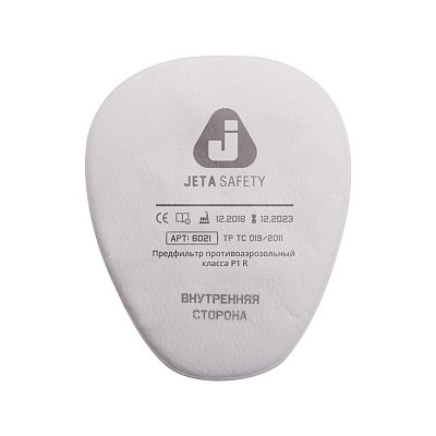 6021 Фильтр противоаэрозольный (предфильтр) Jeta Safety класса P1 R , в упаковке 4 шт/коробка 100 шт можно купить по выгодной оптовой цене. Забрать товар можно самовывозом со склада-магазина в Дмитрове или выбрать доставку по Майкопу транспортной компанией при оформлении заказа.