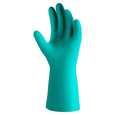 Защитные перчатки из нитрила. Внутри флокированы 100% хлопком. Обладают высокой устойчивостью к водорастворимым неорганическим кислотам (до 80%), щелочам (до 40%), солям, спиртам, растворителям. Текстурная поверхность ладони в виде ромбов для лучшего захвата. Слегка расширенная манжета для вентиляции. Отличная эластичность и комфорт. Высокая износоустойчивость.